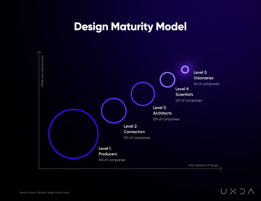 The concept of design maturity is built around the idea that organizations progress through various stages as they develop their design capabilities.