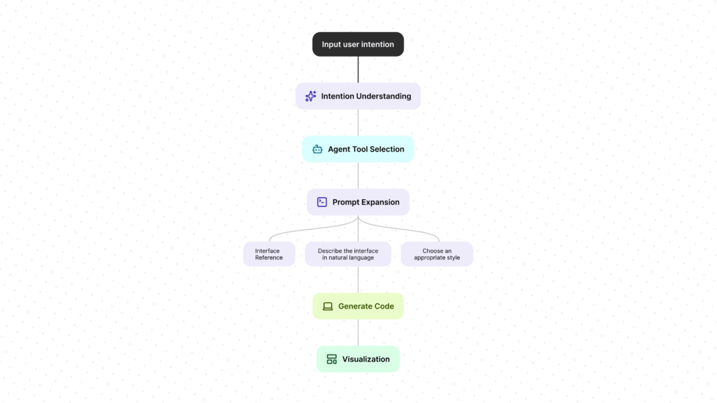Once the system understands the user’s intent, it predicts what the user needs next. That prediction determines what gets generated, whether that is a layout, a set of recommendations, content variations, or the next step in a flow.