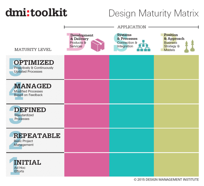 - Overview: The Design Maturity Matrix by the Design Management Institute (DMI) is a design value scorecard that helps organizations measure design maturity to align investments with strategy